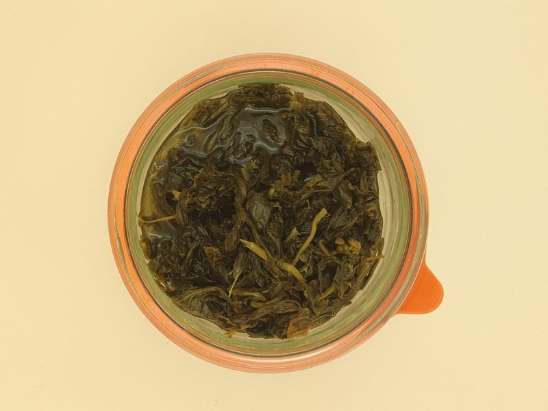 In this recipe, we made truly fermented pickles using wild aromatics. Most pickles, you can buy in shops, are not fermented but pickled using vinegar, which has its place, but gives a different flavor profile. In Eastern Europe, fermented pickles are strongly preferred and used as an ingredient, for example, in pickle soup (see serving suggestions). Typical aromatics added to pickles when fermenting are mustard seeds, horse radish, garlic, dill, and kale leaves. We found mustard (Sinapis arvensis) seeds in the wild. The other ingredients we substituted with garlic mustard (Alliaria petiolata) root, wild garlic (Allium ursinum) bulbs, hogweed (Heracleum
